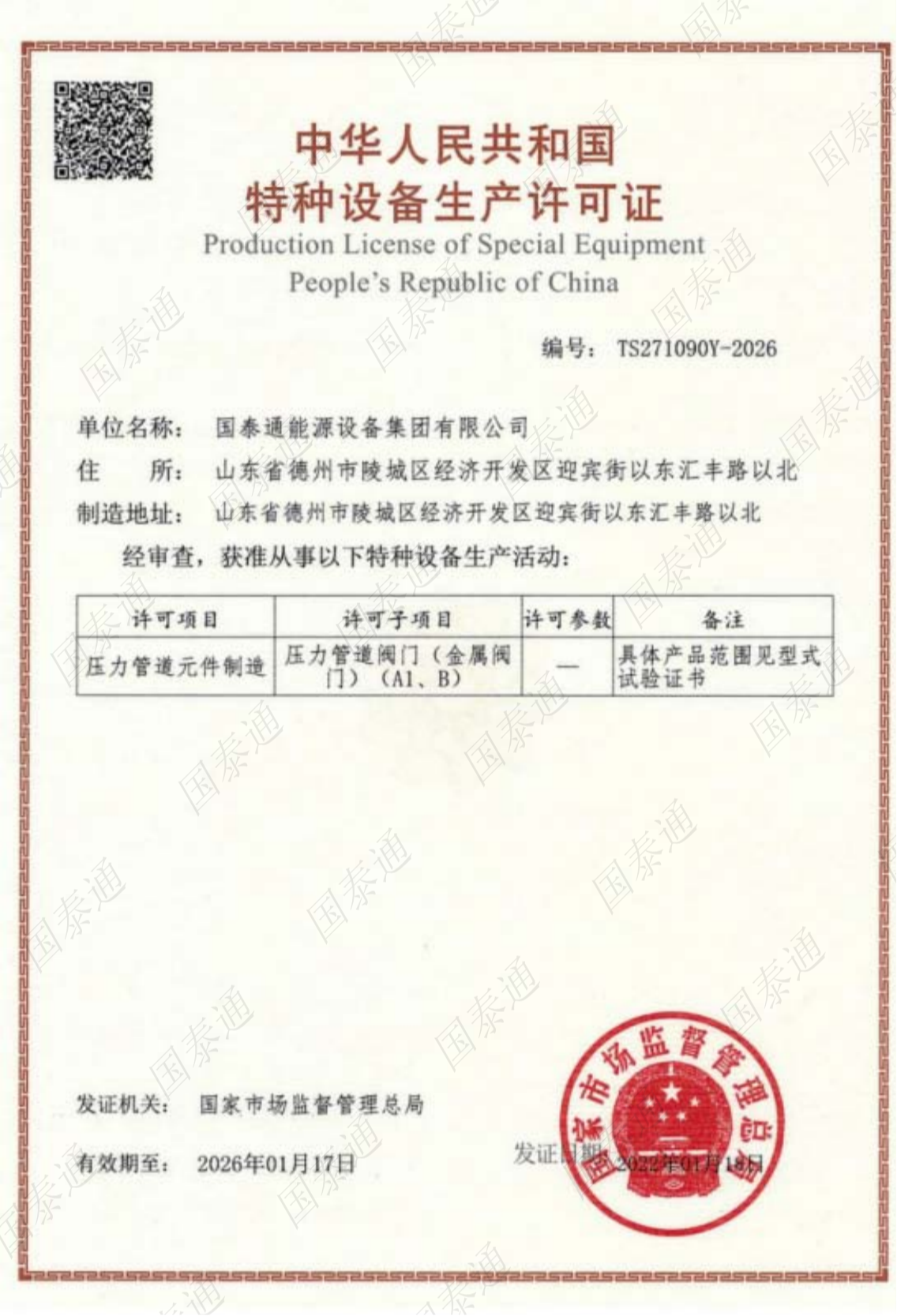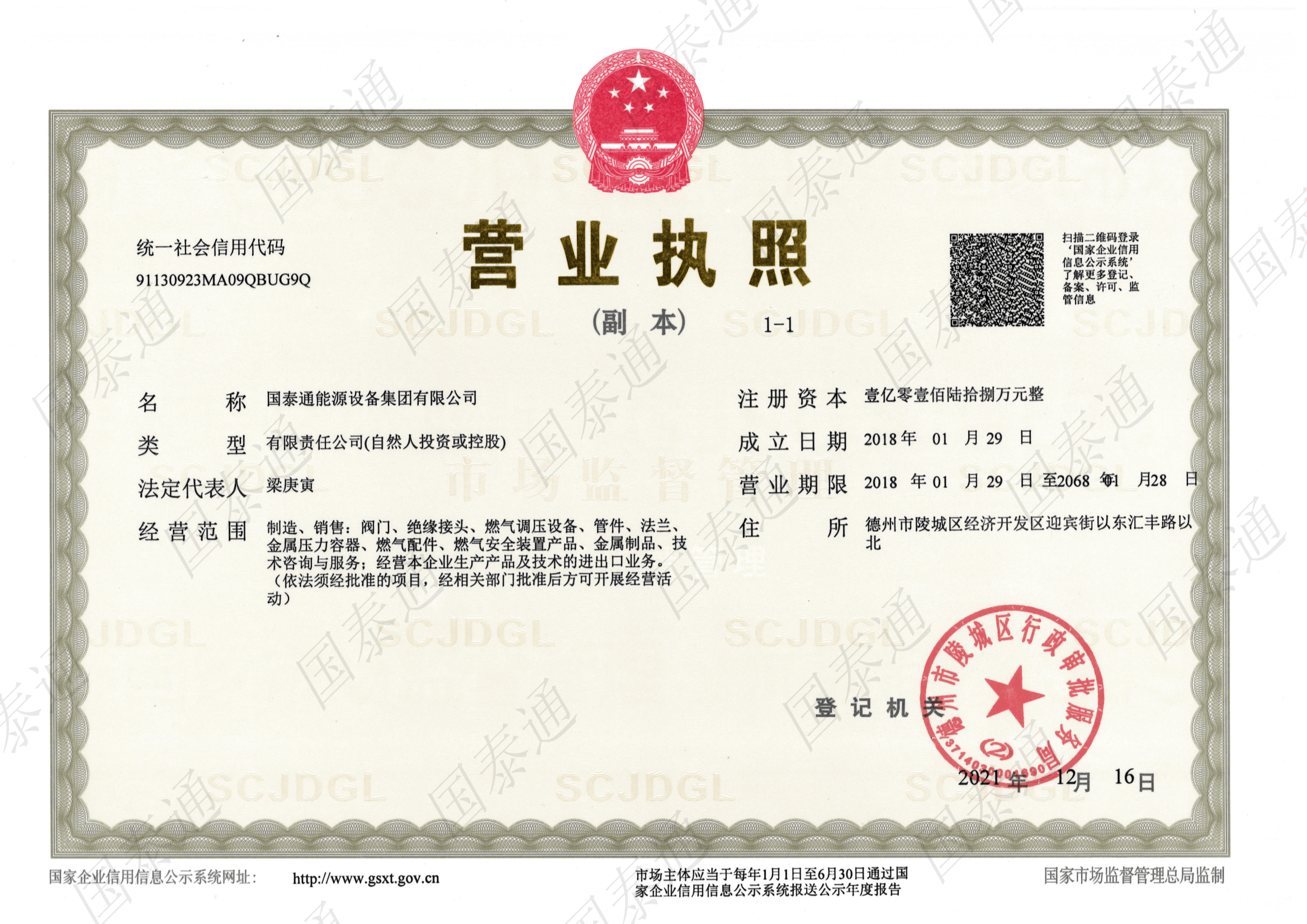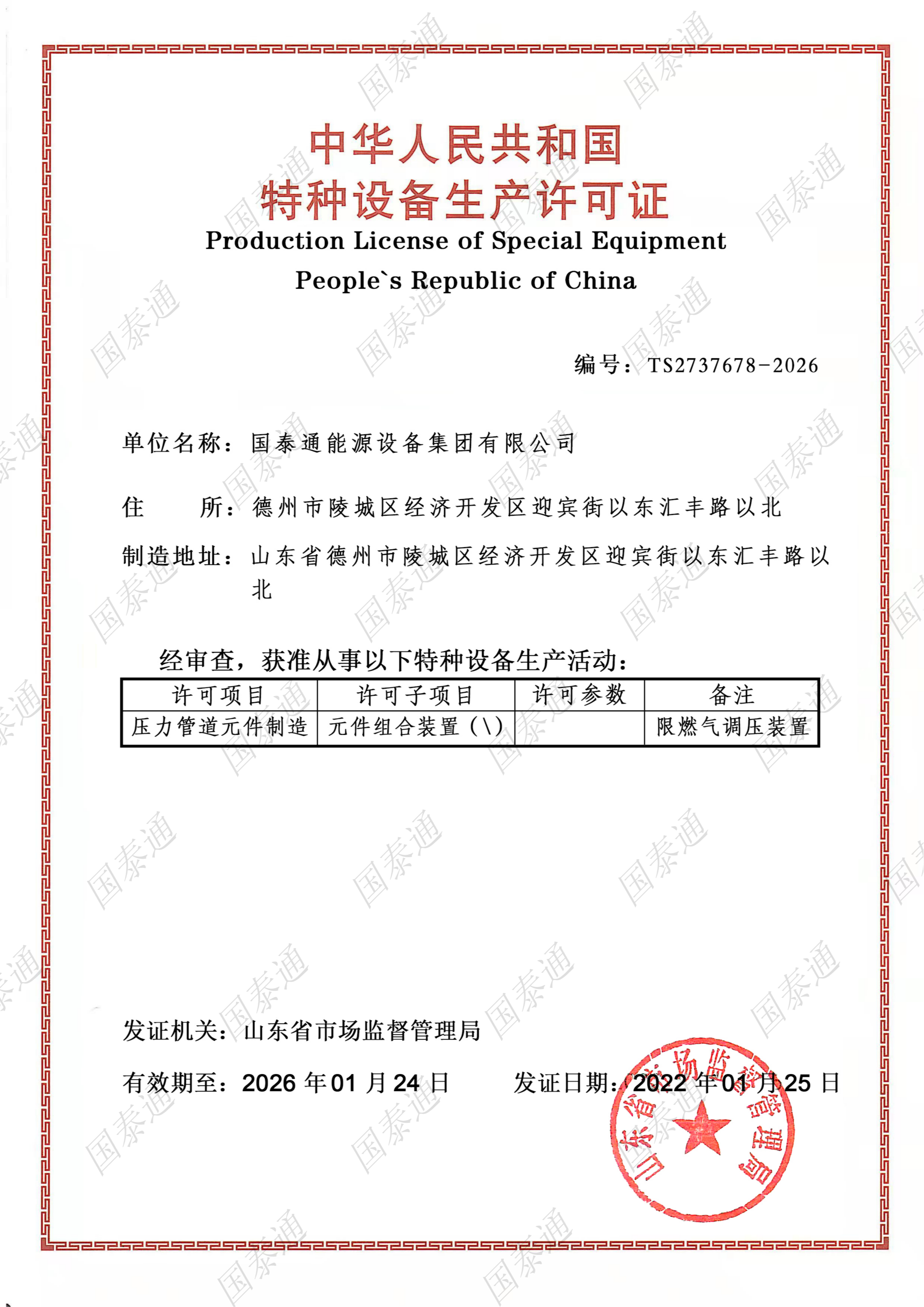 國泰通能源設備集團有限公司是一家國家級高新技術企業(yè),專注于閥門和燃氣調壓輸配設備設計、研發(fā)、生產、銷售、服務于一體的系統集成解決方案服務商。公司成立于2011年,注冊資金10168萬元,擁有北京運營中心和山東生產中心兩大基地,北京運營中心主要承擔集團公司的戰(zhàn)略規(guī)劃發(fā)展,山東生產基地承擔集團公司產品研發(fā)、生產和銷售服務,集團公司山東生產基地占地面積5萬余平方米,總建筑面積3萬余平方米,有著現代化的廠房和辦公大樓。集團公司經過十多年的茁壯發(fā)展,現擁有中、高級工程師27名,生產服務技術人員二百余人......